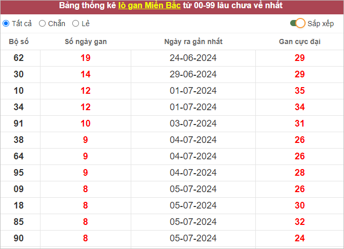 ⭐️ Lô khan XSMB lâu ra nhất: 62 – 30 – 10 – 34 – 91
