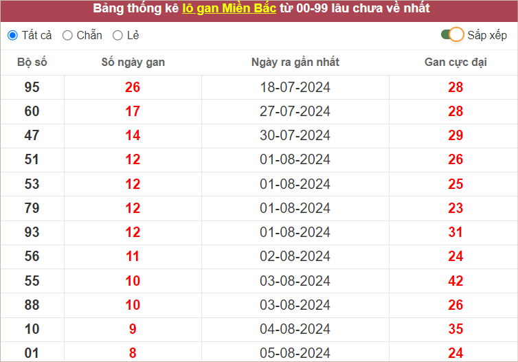 ⭐️ Lô gan miền Bắc lâu ra nhất: 95 – 60 – 47 – 51 – 53