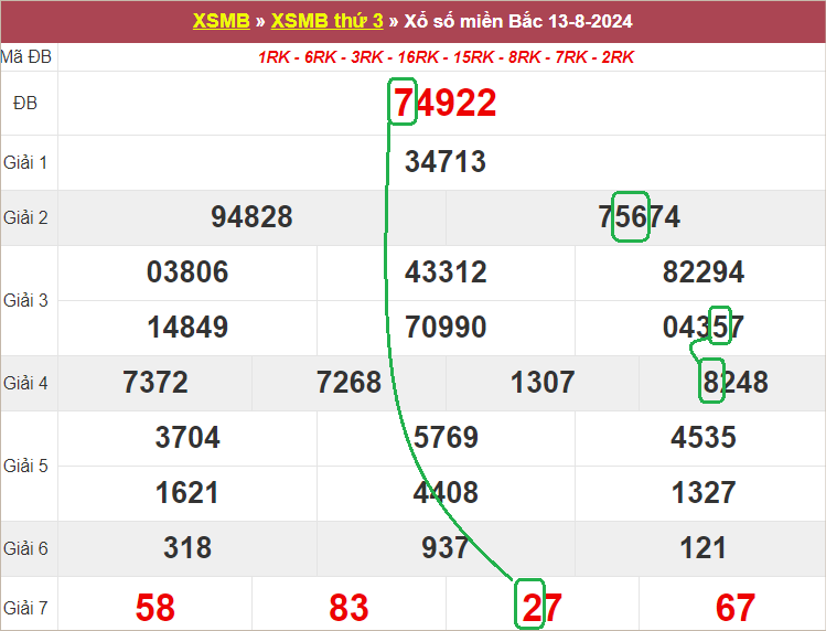 THỐNG KÊ LÔ TÔ KẾT QUẢ XSMB NGÀY 13-8-2024