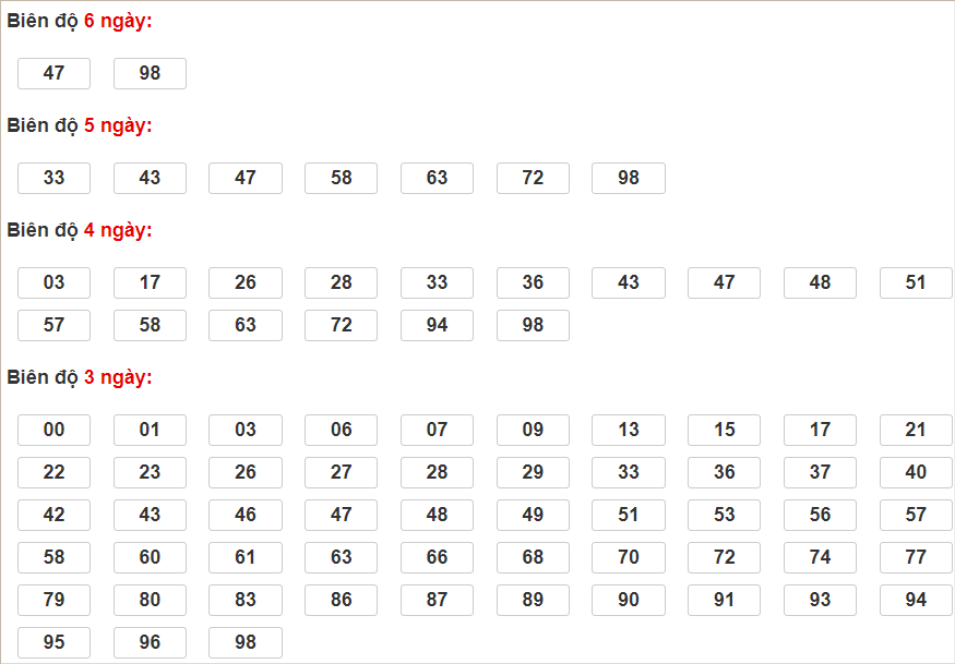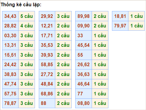 Cặp lô 18, 60, 61, 91 có độ dài 3 ngày.