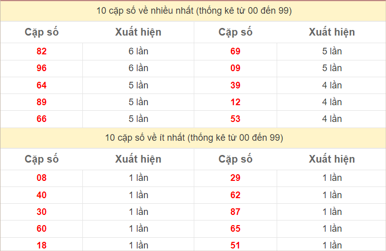 Các cặp số nóng nhất hôm nay: 59 – 95 – 43 – 72 – 86