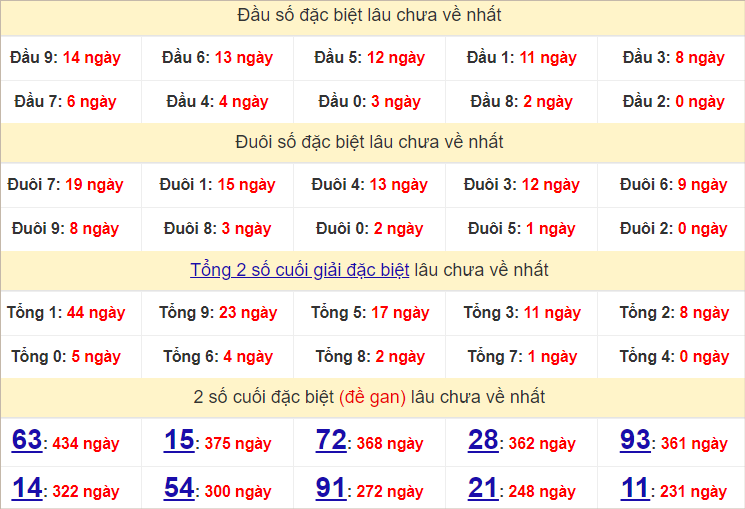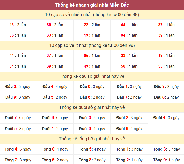 Thống kê hai số cuối giải đặc biệt miền Bắc ngày 14/8