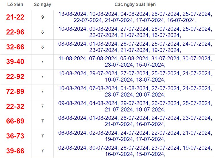 Dàn lô hôm nay miền Bắc bất bại ngày 14/8/2024