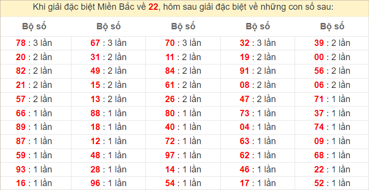 ⭐️ Thống kê tần suất lô về nhiều trong 30 ngày qua: 22 (17 lần), 21, 39, 52, 96 (15 lần), 32, 72, 89 (14 lần)
