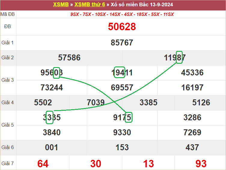Xem lại bảng KQXSMB ngày 13-9-2024 hôm qua