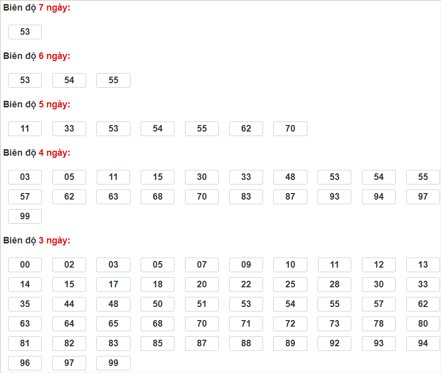 Cặp lô 05, 33, 50, 53 có độ dài 3 ngày.