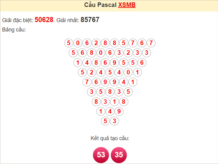 Kết quả từ soi cầu Pascale là cặp số may mắn: 53 35