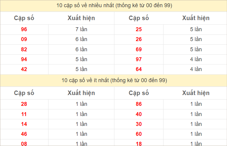 Cặp lô 03 (vị trí ghép cầu 52-95), 05, 11, 15, 30, 33, 48, 53, 54, 55, 57, 62, 63, 68, 70, 83, 87, 93, 94, 97, 99