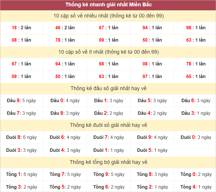 Thống kê hai số cuối giải đặc biệt miền Bắc ngày 14/9