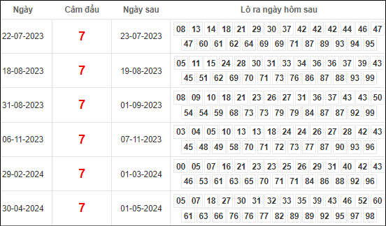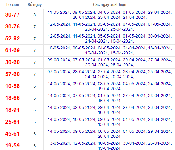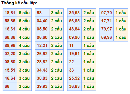 Cầu lô chạy 6 ngày qua (cầu dài nhất)