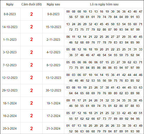 Theo bảng soi cầu trên ta thấy có 2 cầu lô động xuất hiện và có khả năng cao sẽ về sắp tới.