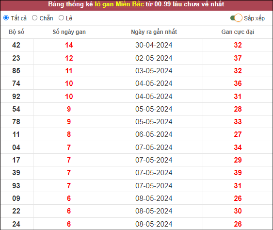 ⭐️ Lô gan MB lâu ra nhất: 42 – 23 – 85 – 74 – 92