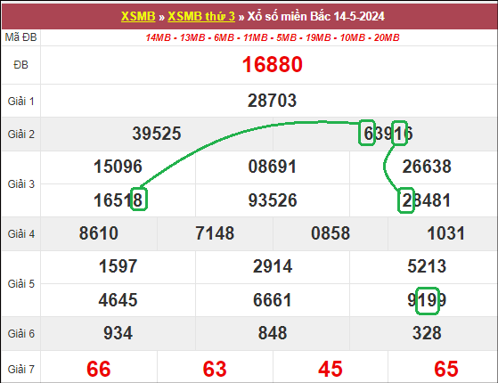 Xem lại bảng KQXSMB ngày 14/5/2024 hôm qua