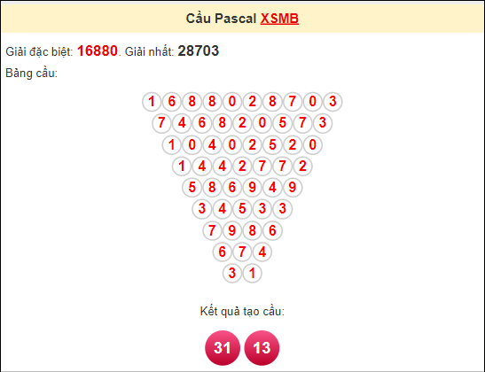 Kết quả từ soi cầu Pascale là cặp số may mắn: 31 – 13