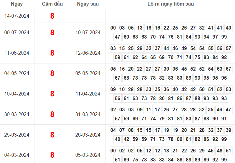 THỐNG KÊ LÔ TÔ KẾT QUẢ XSMB NGÀY 14-7-2024