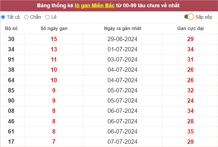 ⭐️ Lô gan miền Bắc lâu ra nhất: 30 – 34 – 91 – 38 – 64