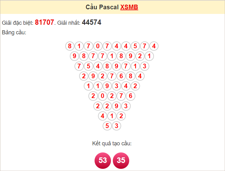 Kết quả từ soi cầu Pascale là cặp số may mắn: 53 35
