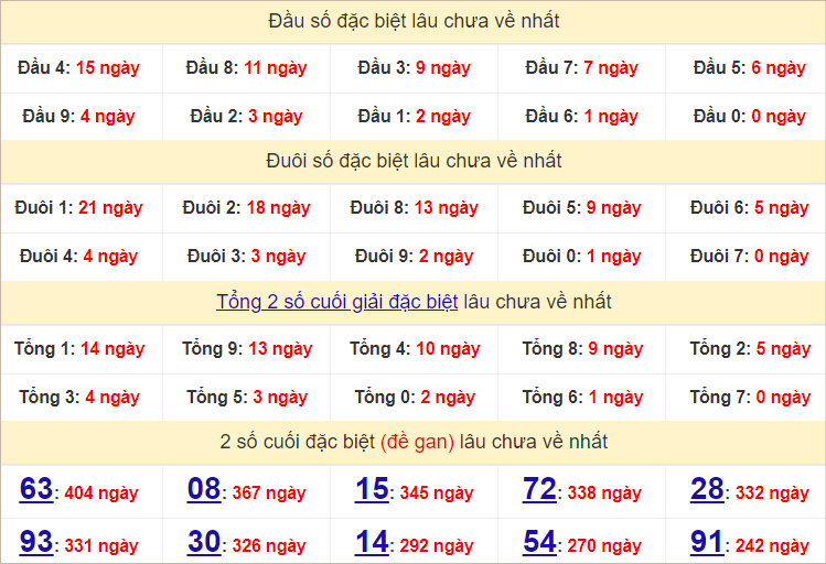 Thống kê hai số cuối giải đặc biệt miền Bắc ngày 15/7