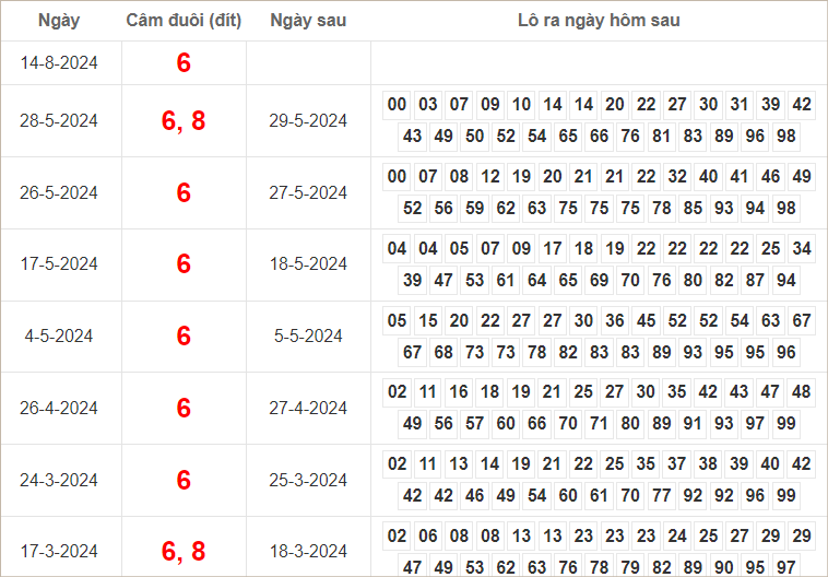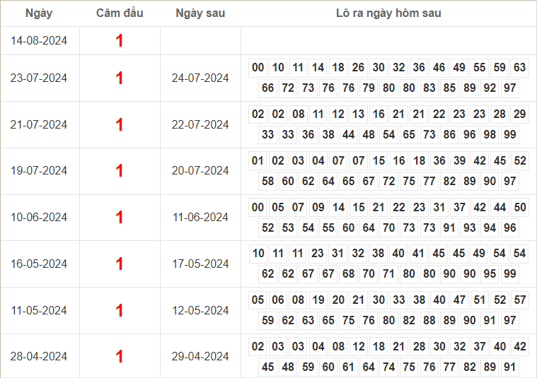 Dàn lô hôm nay miền Bắc bất bại ngày 15/8/2024