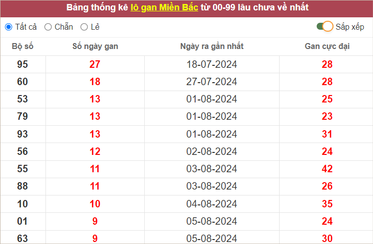 ⭐️Lô gan MB lâu ra nhất: 95 – 60 – 53 – 79 – 93