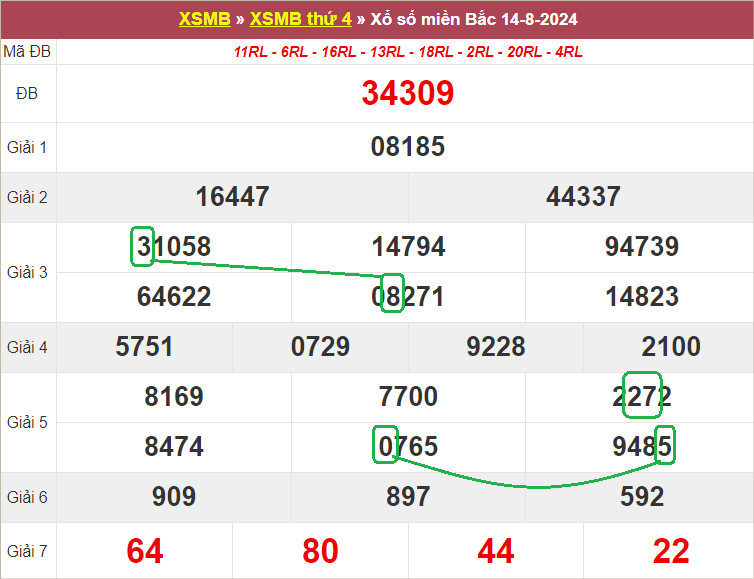 Xem lại bảng KQXSMB ngày 14-8-2024 hôm qua