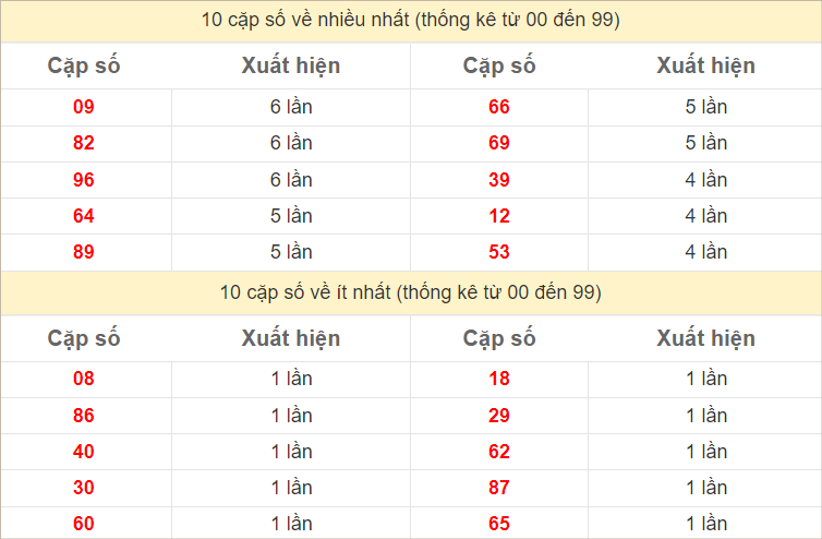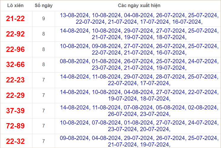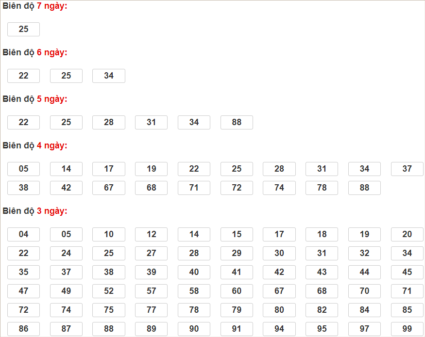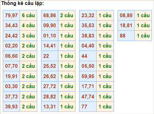 Cặp lô 18, 25, 26, 27, 30, 74, 95 có độ dài 3 ngày. (cầu về cả cặp)