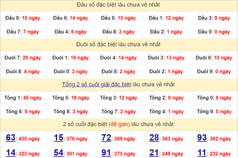 Thống kê hai số cuối giải đặc biệt miền Bắc ngày 15/8