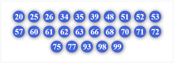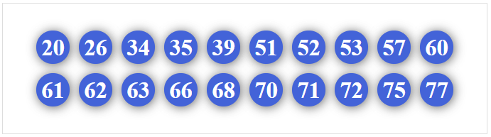 50, 51, 52, 53, 54, 56, 57, 58, 59, 60, 61, 62, 63, 64, 65, 67, 68, 69, 70, 71, 72, 73, 74, 75, 76, 78, 79, 80, 81, 82, 83, 84, 85, 86, 87, 89