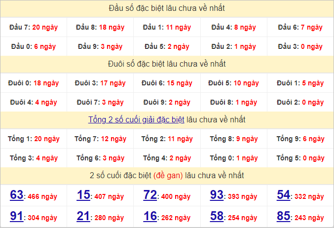 Thống kê hai số cuối giải đặc biệt miền Bắc ngày 15/9