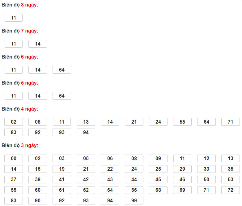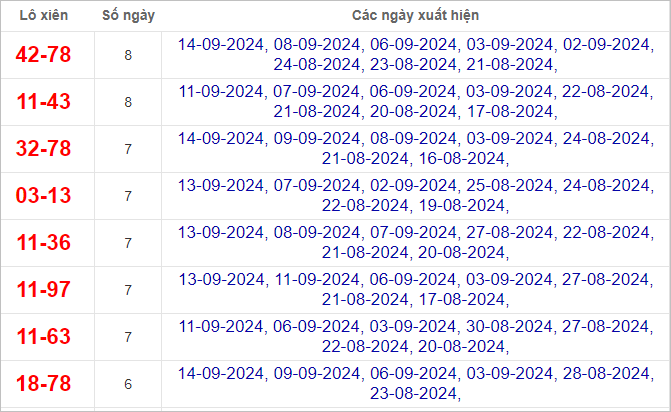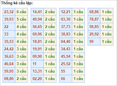 Cặp lô 02, 32, 33, 42, 71 93 có độ dài 3 ngày.