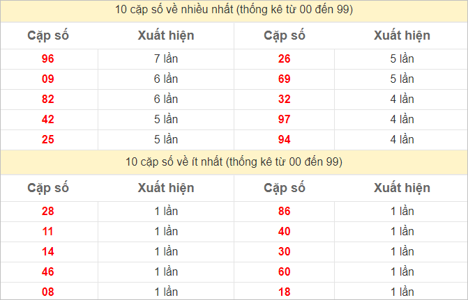 ⭐️ Thống kê tần suất các cặp lô về nhiều trong 10 ngày gần đây: 11, 22, 69 (8 lần), 36, 42, 54 (7 lần), 09, 57 (6 lần)