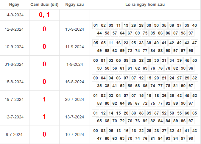 Dàn lô hôm nay miền Bắc bất bại ngày 15/9/2024