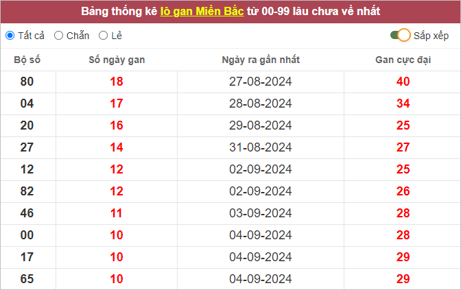 ⭐️ Lô gan XSMB lâu ra nhất: 80 – 04 – 20 – 27 – 12