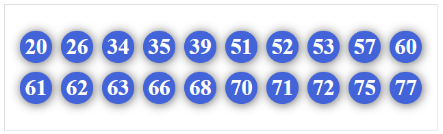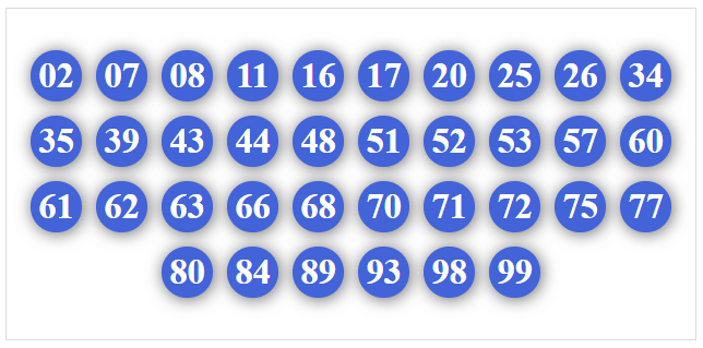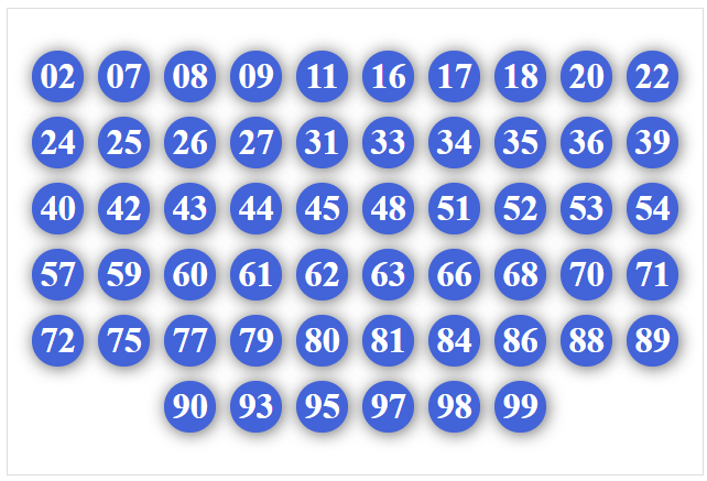 10, 12, 13, 14, 15, 16, 17, 18, 19, 30, 31, 32, 34, 35, 36, 37, 38, 39, 50, 51, 52, 53, 54, 56, 57, 58, 59, 90, 91, 92, 93, 94, 95, 96, 97, 98