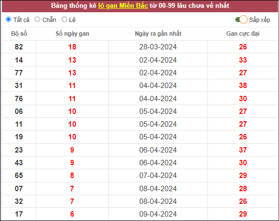 ⭐️Thống kê lô gan miền Bắc lâu ra nhất: 82 – 14 – 77 – 31 – 76