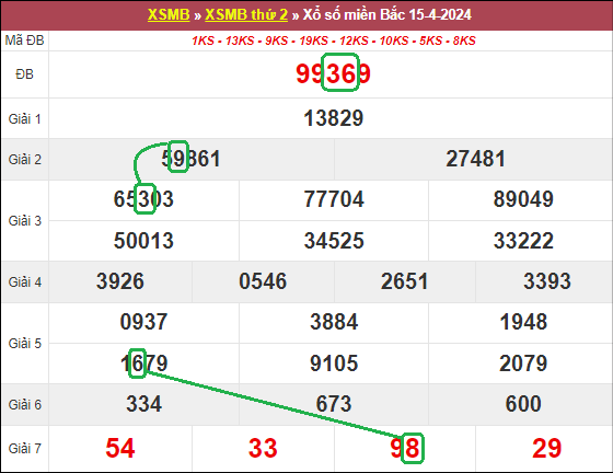 Xem lại bảng KQXSMB ngày 15/4/2024 hôm qua