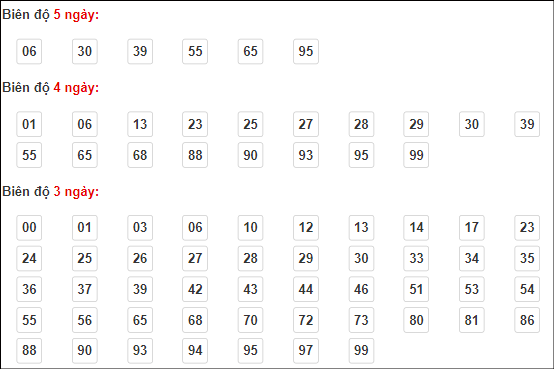 Các cặp số nóng nhất hôm nay: 39 – 99 – 93 – 07 – 30