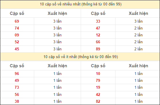 ⭐️ Thống kê tần suất các cặp lô về nhiều trong 10 ngày gần đây: 61 (8 lần), 69 (7 lần), 10, 13, 22, 50, 83 (6 lần), 16 (5 lần)