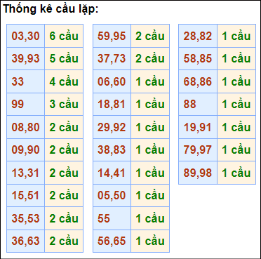 Cặp lô 06 (vị trí ghép cầu 37-59), 30 (39-97), 39 (65-82), 55 (10-55), 65 (13-55), 95 (9-55)
