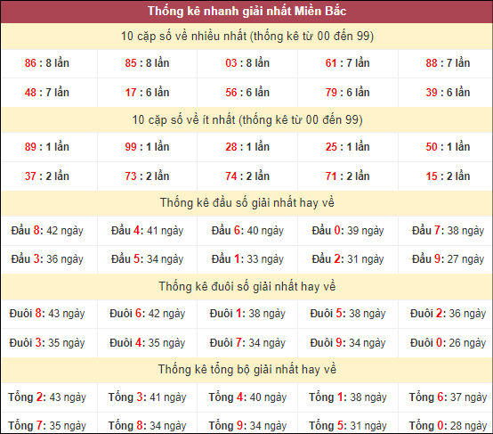 Thống kê hai số cuối giải đặc biệt miền Bắc ngày 16/4/2024