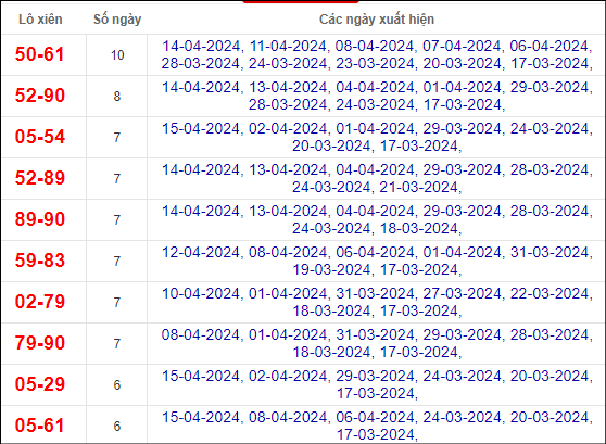 Cầu lô chạy 5 ngày qua (cầu dài nhất)