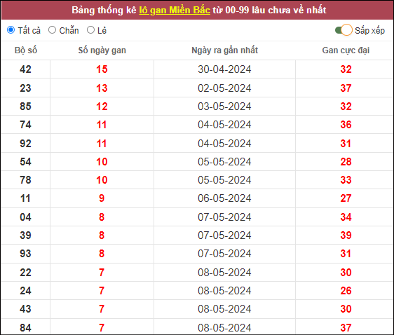 Dàn lô hôm nay miền Bắc bất bại ngày 16/5/2024