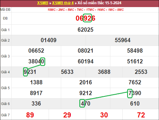 Xem lại bảng KQXSMB ngày 15/5/2024 hôm qua