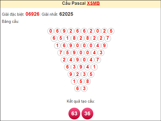 Kết quả từ soi cầu Pascale là cặp số may mắn: 63 – 36