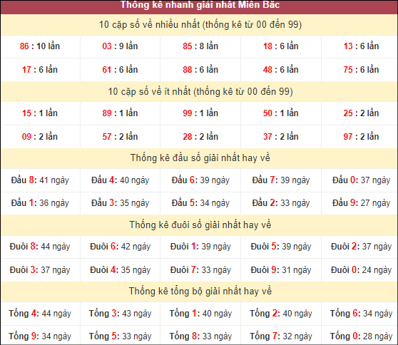Thống kê hai số cuối giải đặc biệt miền Bắc ngày 16/5