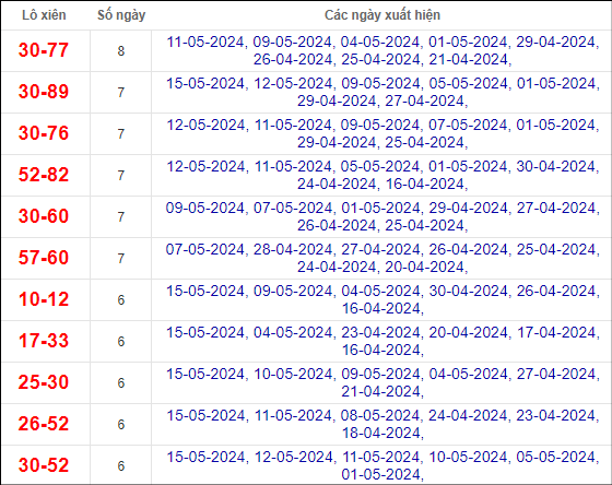 Cầu lô chạy 6 ngày qua (cầu dài nhất)