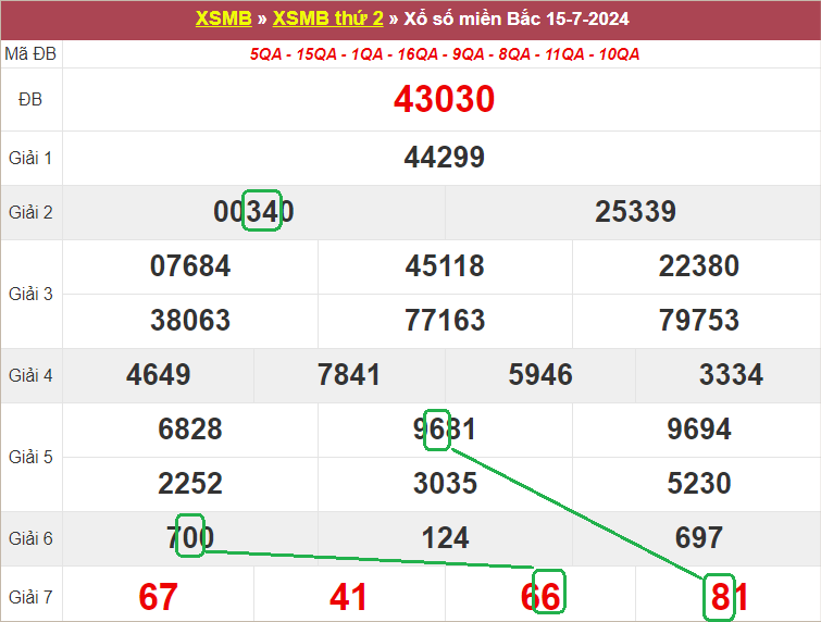 Xem lại bảng KQXSMB ngày 15-7-2024 hôm qua