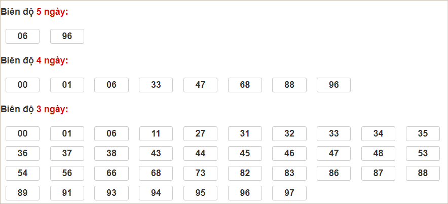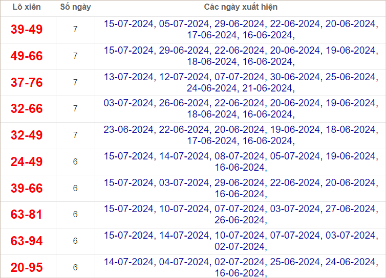 Cặp lô 04, 36, 77, 81, 84, 86, 88, 89, 94 có độ dài 3 ngày.