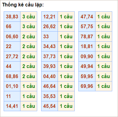 ⭐️ Thống kê tần suất các cặp lô về nhiều trong 10 ngày gần đây: 59 (7 lần), 52, 63, 76, 94, 99 (6 lần), 16, 20 (5 lần)