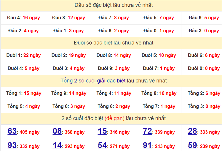 Thống kê hai số cuối giải đặc biệt miền Bắc ngày 16/7